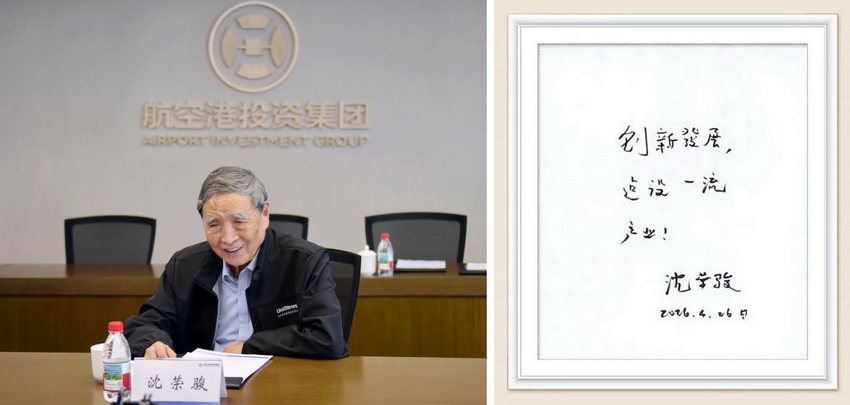 沈荣骏院士对航空港投资集团的业务布局与转型方向给予充分肯定,对合众思壮过去30余年在时空信息领域做出的贡献和取得的成绩表示认可。易日勿感谢沈荣骏院士对集团发展的深切勉励,并表示集团将继续聚焦产业投资与创新发展,积极承担推动产业转型升级的国企担当,继续大力支持合众思壮发展,巩固其在时空信息领域的领先地位。最后,沈荣骏院士题词寄语:“创新发展,建设一流产业”,对航空港投资集团及合众思壮的发展寄予殷切期许。