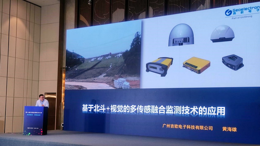 大会现场,吉欧电子监测业务团队负责人黄海雄在水利水电专题会场作题为《基于北斗+视觉的多传感融合监测技术的应用》报告,聚焦水利水电、地灾、矿山、交通、建筑等多行业监测痛点,以及传统北斗/GNSS监测技术的局限性,与业内专家、同行进行深度交流,获得广泛认可。
